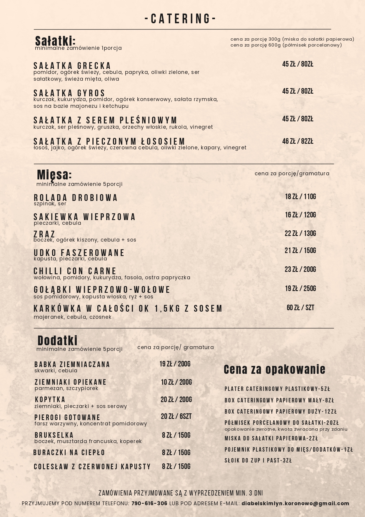 Restauracja Diabelski Młyn oferuje kompleksowe usługi cateringowe na każdą okazję — zarówno na imprezy rodzinne, firmowe, jak i wydarzenia okolicznościowe. Przygotowujemy potrawy według sprawdzonych receptur, korzystając z wysokiej jakości składników, dzięki czemu nasze dania są świeże, aromatyczne i zawsze gotowe do podania.